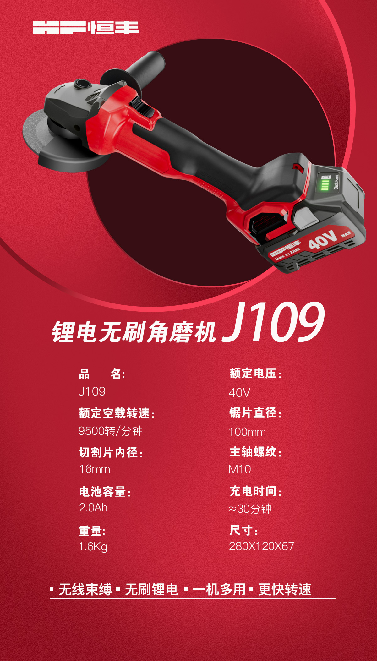 J109 / J119 / J129 锂电无刷角磨机